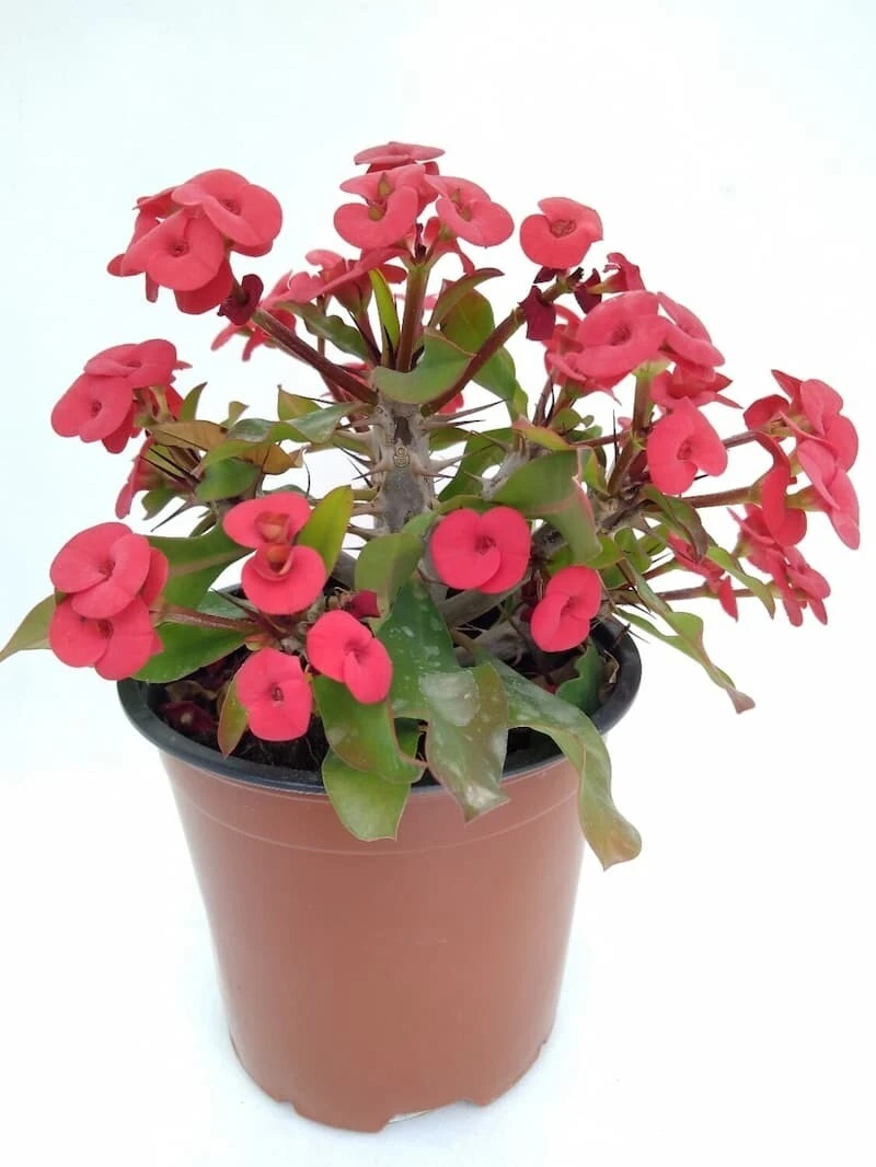 Planta Euphorbia Milii Corona de Cristo con maceta.